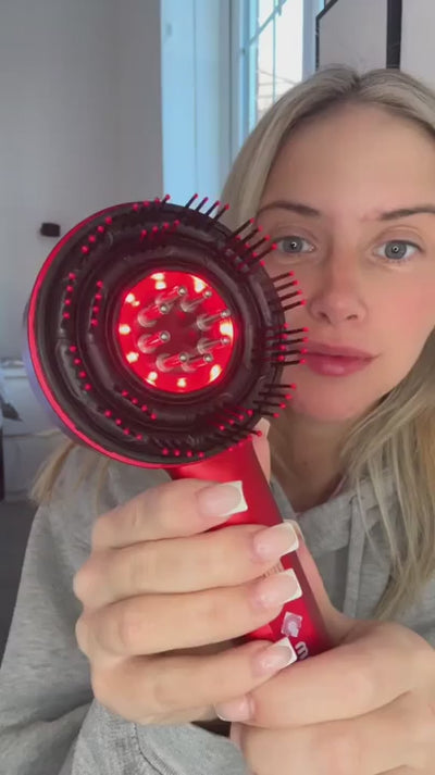Rejuvenece tu cuero cabelludo con terapia de luz roja y masaje profundo, estimulando el crecimiento de hebras más gruesas con tan solo cinco minutos de uso diario.